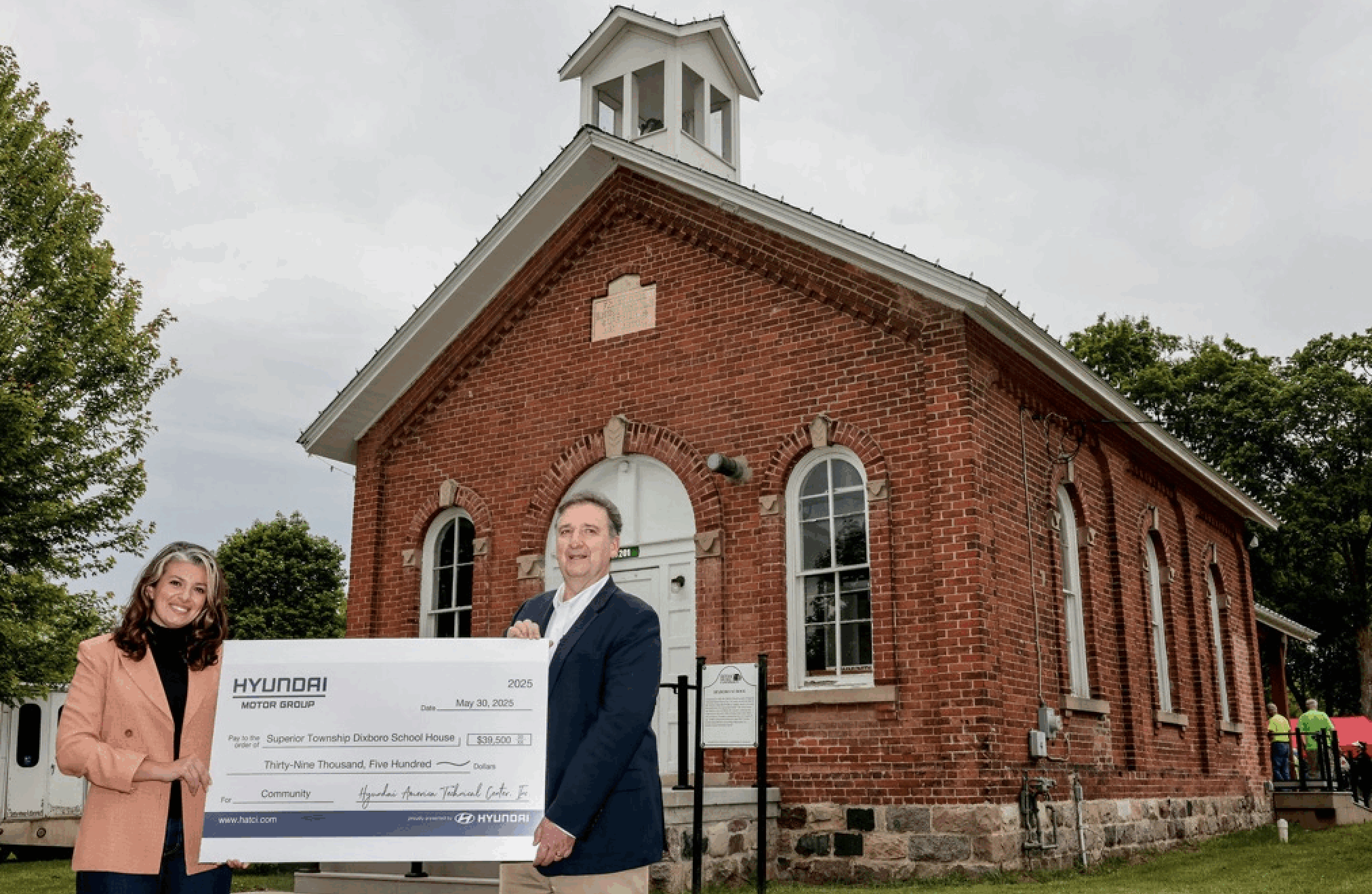 Hyundai America Technical Center, Inc. (HATCI) has announced a donation of $39,500 to Superior Charter Township. This contribution will support the revitalization of the Dixboro Historic School House, a beloved community landmark in Dixboro, Michigan. The announcement was made on Friday, May 30, during the Dixboro Market Day event.