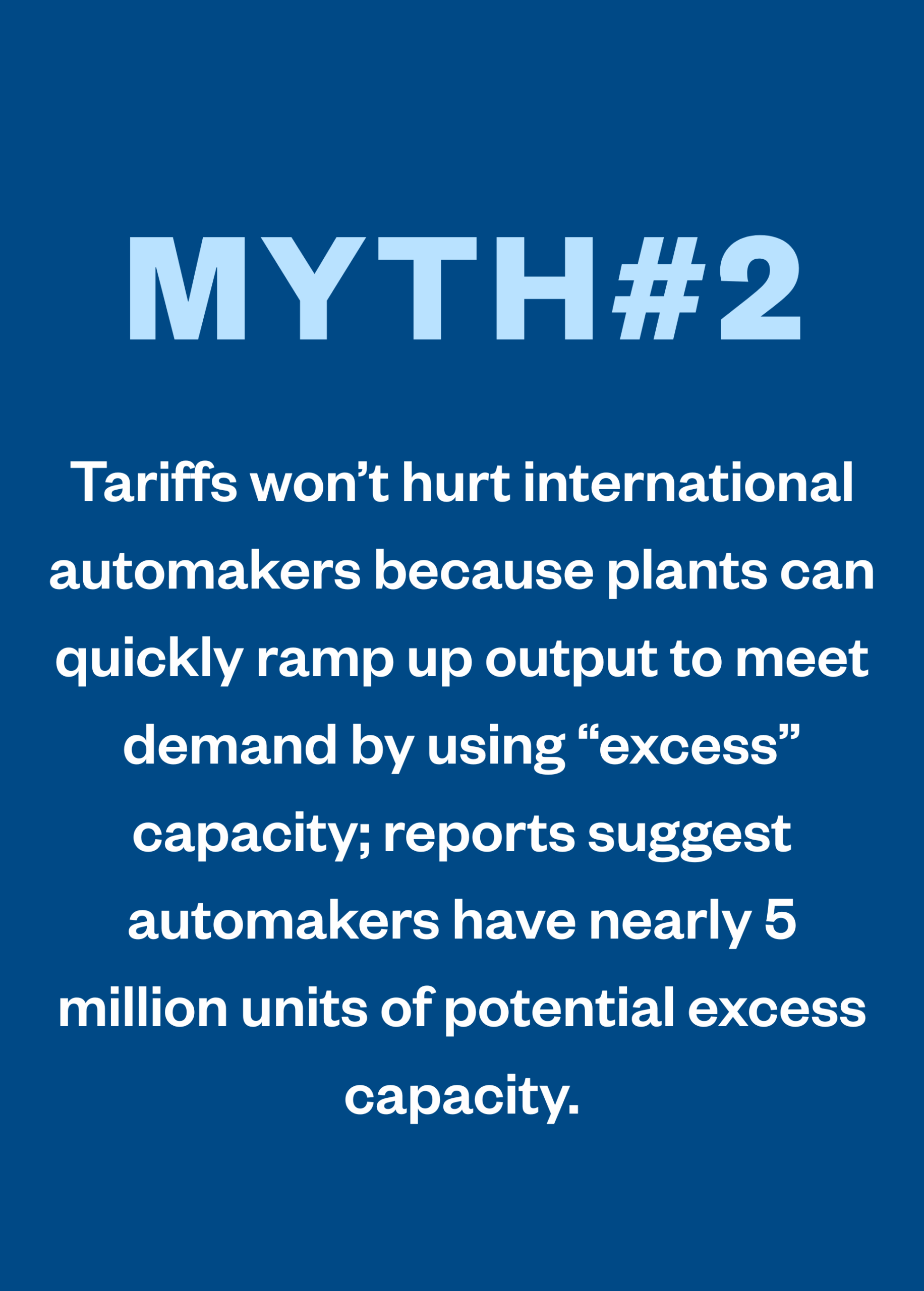 FACT: International automakers have committed more than $124 billion to their U.S. operations. They are part of the fabric of their local communities and have spent the last sixty years dedicated to that commitment. Their workforce – 162,000 strong – is made up of dedicated Americans who are proud to support their local economies. The proof of their commitment is in the numbers: for the past two years, international automakers in the U.S. have out-produced the Detroit 3, with 4.9 million vehicles produced in 2024 alone.