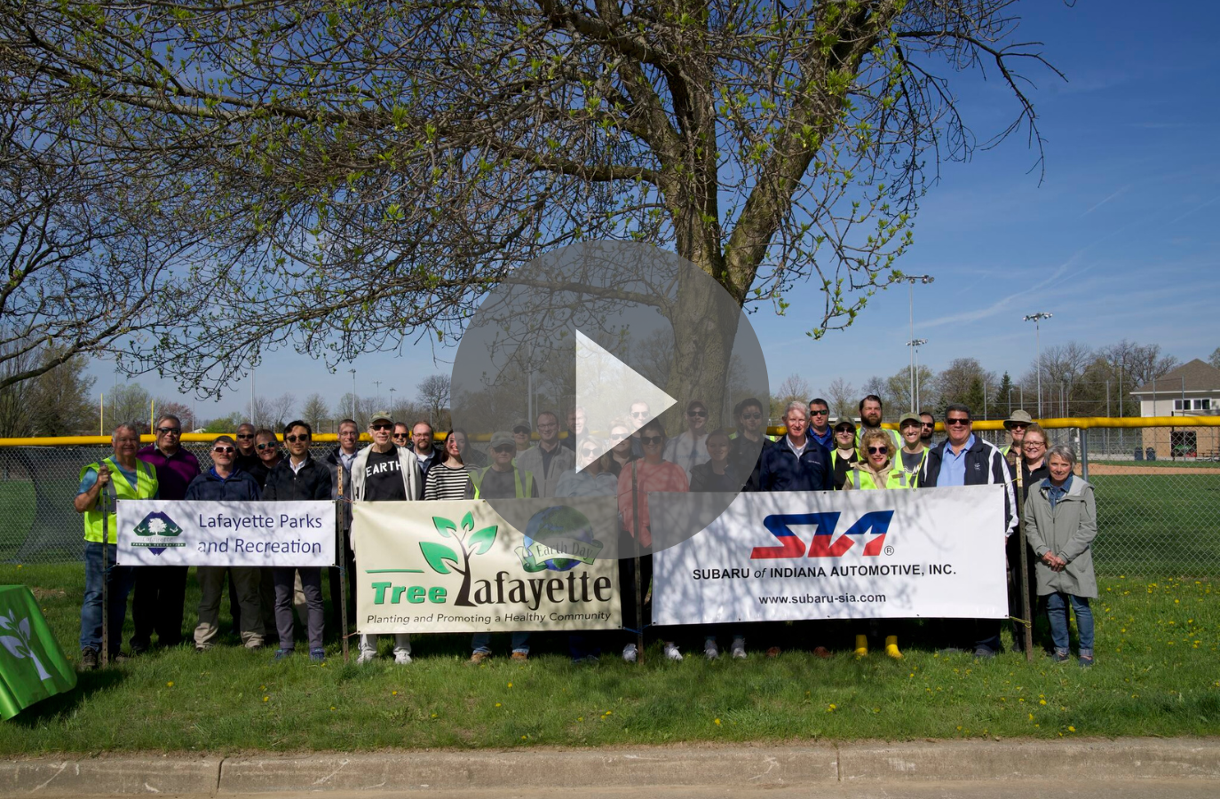 Lafayette city officials, Tree Lafayette, Subaru of Indiana, and volunteers all joined to celebrate Earth Day and plant eighteen trees.
